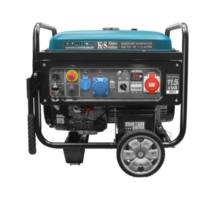 Модель генератора KS 12 - 1E 1/3 ATSR - це бензиновий генератор з максимальною потужністю в одному циліндрі! Генератор оснащений можливістю підключення системи АВР, і унікальної технології перемикання фаз VTS, яка дає можливість працювати в однофазному (230) або трифазної (400В) режимі майже без втрати потужності. Зручна, ергономічна панель управління з кнопкою аварійної зупинки генератора і багатофункціональний LED-дисплеєм, що дозволяє контролювати роботу генератора-напруга, частоту, кількість відпрацьованих годин, а також рівень масла. Кожна модель оснащена розетками, що дозволяють знімати максимальну потужність, яка віддається приладом, розетки обладнані запобіжниками і комплектуються відповідними вилками. Місткий 55-літровий паливний бак забезпечує тривалу і безперервну роботу. Особливості KS 12 - 1E 1/3 ATSR: Потужний 1-циліндровий чотиритактний двигун з повітряним охолодженням; система полегшеного ручного старту; має можливість підключення блоку АВР; зручна ергономічна панель управління ; оснащений сталевим паливним баком збільшеного розміру Комплектація: Бензиновий генератор; акумулятор; колеса; транспортувальний комплект; інструкція по експлуатації; гарантійний талон