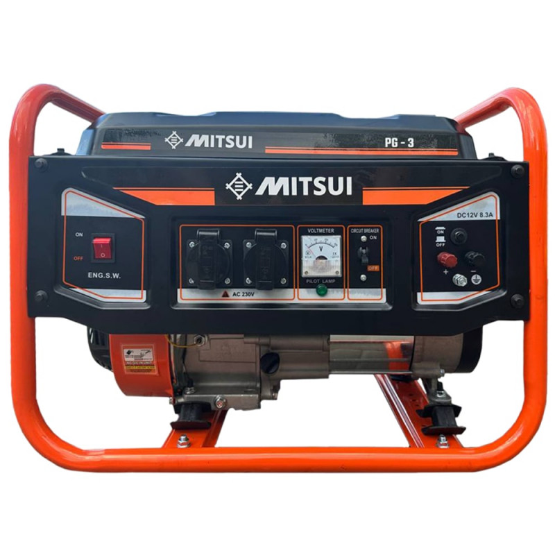 У генераторі Mitsui PG-3 встановлений двигун моделі 208 CC. Контроль за створенням агрегату відбувається під наглядом досвідчених інженерів. Дана модель двигуна 4-тактна, з повітряним охолодженням. Максимально ефективно використовує паливо та відрізняється безвідмовністю та довговічністю. Одного повного бака вистачить на 9 годин без пауз та переривань при номінальному навантаженні (близько 2,8 кВт). У разі перевищення навантаження спрацює автомат захисту. Без масла генератор не спрацює, за що відповідає датчик рівня олії. За кількістю бензину зручно стежити за показаннями датчика, розташованого зверху на генераторі. Характреристики Mitsui PG-3: Ручний старт; 2 розетки на 220 В та клеми на 12 В для заряджання акумулятора; Потужність генератора: мах - 3 kWt, міn - 2,8 kWt; 4-х тактний двигун; Матеріал обмотки - мідь. Комплектація: Генератор; Комплект 2 виделок + свічковий ключ; Гарантія.