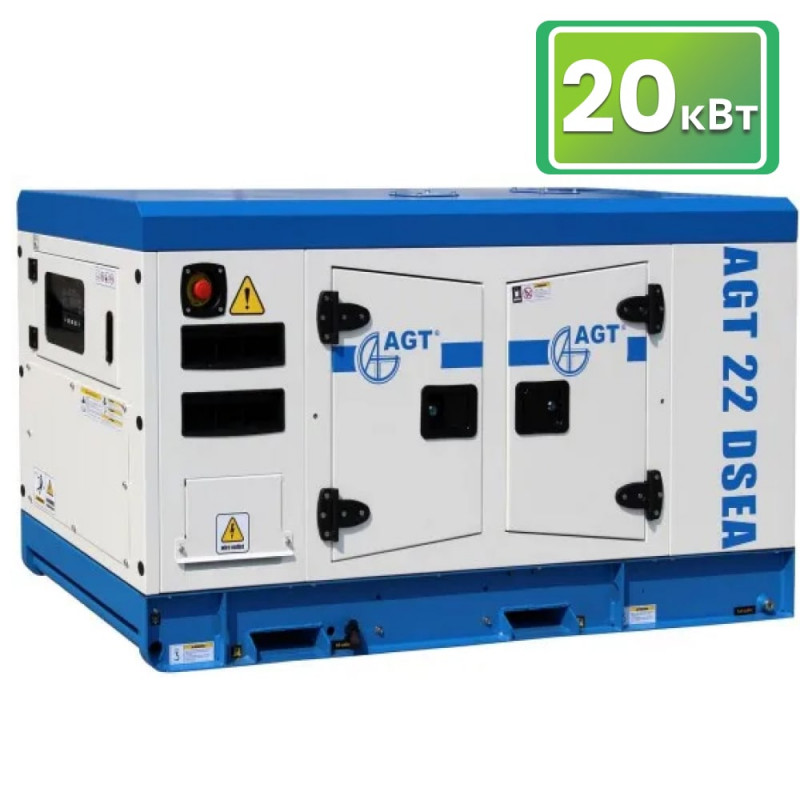 Дизельний генератор AGT 22 DSEA - це потужний та надійний генератор, який може використовуватися для різних завдань у різних галузях. Цей генератор призначений для забезпечення електроенергією різних пристроїв і систем у випадках, коли відсутнє стаціонарне підключення до електромережі або коли потрібно забезпечити незалежне електропостачання. Основні робочі параметри генератора AGT 22 DSEA включають час безперервної роботи до 12 годин, максимальну потужність 20 кВт та коефіцієнт потужності 0,8. Частота струму та напруга становлять 50 Гц, а тип запуску може бути як електростарт, так і автозапуск. Генератор AGT 22 DSEA оснащений потужним 4-тактним дизельним двигуном, об'ємом 2980 см.куб., який розвиває потужність 30 к.с. та працює на дизельному паливі. Двигун працює на частоті обертання 1500 об/хв та має рідинне охолодження. Конструктивні та функціональні особливості генератора AGT 22 DSEA включають можливість встановлення автоматики, виконання в кожусі і тип установки стаціонарні. Додатково, генератор має захист від перевантажень, об'єм паливного бака 70 літрів, функцію AVR для стабілізації напруги та датчик рівня палива. Генератор AGT 22 DSEA має габарити 1900х900х1200 мм, важить 850 кг та класифікується як професійний. Він може використовуватися для різних завдань у комерційних, державних та виробничих установах. Клас захисту генератора складає IP23, а матеріал обмотки альтернатора - мідь. Комплектація електростанція AGT 22 DSEA: Генератор; інструкція з експлуатації; гарантійний талон