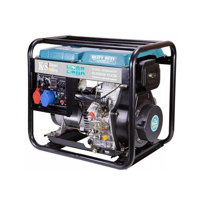 Дизельний генератор Konner&Sohnen KS 8102HDE-1/3 atsR (EURO II) виробляє електрику номінальною потужністю 6 кВт з можливістю короткострокового перевищення при включенні електроінструменту. Силове обладнання працює в режимах генерації одно - і трифазного струму для живлення різнопланових пристроїв в побуті, на виробництві або будмайданчику. Особливості Konner & Sohnen KS 8102 HDE-1/3 ATSR: Фірмовий мотор надійний і стабільний; двигун маркується лазером для постійного контролю на всіх виробничих етапах; аварійне відключення машини при критичному рівні мастила або перевантаження; швидкий пуск в холодну пору року реалізовано прогріванням бензину; системний захист від короткого замикання, перепадів і стрибків вольтажу Комплектація: Дизельний генератор; вилка переносна 2Р + РЕ 16А 230В; силова вилка переносна 2P + Е 230, 32А; ключ ріжковий, 8х10 мм; ключ ріжковий, 12х14 мм; ключ ріжковий, 17х19 мм; викрутка двостороння 6.0 мм, РН2; інструкція по експлуатації; гарантійний талон