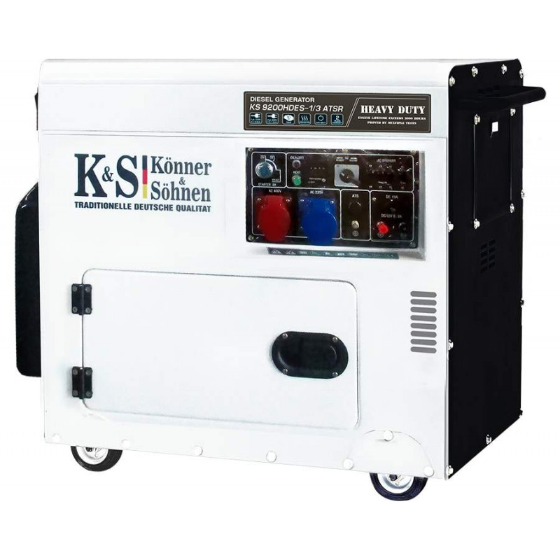 На превеликий жаль, не завжди є можливість підключення до джерела електроживлення у разі виникнення такої необхідності. Існують домоволодіння, дачі, кіоски та гаражі, позбавлені благ електрифікації з тих чи інших причин. Крім того, почастішали випадки перебоїв із подачею електроенергії внаслідок аварії, обриву проводів, природних катаклізмів чи непередбачених обставин. Відсутність електрики в таких випадках не стане проблемою за наявності генератора на дизельному паливі KS 9200 HDES-1/3 ATSR німецької компанії Konner&Sohnen. Пристрій призначений для тривалого виробництва електроенергії в автономному режимі. Агрегат забезпечує достатньою кількістю енергії одно- та трифазних споживачів побутового та промислового призначення. Особливості та переваги моделі: 4-тактний двигун потужністю 18 л. дозволяє отримати на виході енергію величезної потужності – 7,5 кВт; технологія, що є розробкою бренду Voltage Transfer Switch, дозволяє оперативно переключити тип напруги, що видається, забезпечуючи рівну потужність для трьох- і однофазних споживачів; установка закритого типу, виконана у вигляді каркасного виробу з металевим антивандальним корпусом, усередині якого розташований основний електровиробляючий вузол; агрегат дає на виході заявлену компанією-виробником напругу протягом усього часу роботи, без тенденції до зниження; двигуни німецького бренду проходять випробування в заводських умовах для надходження у продаж тільки справних одиниць із збільшеним моторесурсом без збоїв функціонування та дефектів; універсальний роз'єм для приєднання до ATS блоку з 5 контактами для максимального вибору агрегатів із передачею сигналу за допомогою 5 проводів; продумана панель управління тримає оператора в курсі значення основних показників функціонування, показуючи їх на LED-дисплеї; система шумо- та віброізоляції забезпечує зручність користування міні-станцією в будь-яких сферах життя людини; корпус представленої моделі покривається електростатичною фарбою для надійного захисту металу від корозії; передпусковий нагрів дизельного палива, що надходить у паливну систему установки, полегшує пуск машини за низьких температур повітря восени або взимку. Комплектація: Дизельний генератор; силова переносна вилка 3Р+Е+N, 16А, 400В; силова переносна вилка 2P+Е, 32А, 230В; ключ ріжковий 8х10 мм; ключ ріжковий 12х14 мм; ключ ріжковий 17х19 мм; викрутка двостороння 6.0 мм РН2; інструкція з експлуатації; гарантійний талон