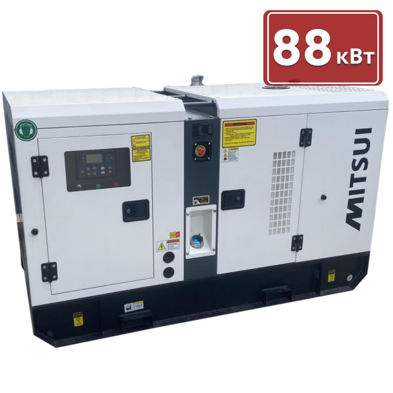 Електростанція дизельна Mitsui APW-80 використовується в якості основного або резервного джерела живлення потужністю до 88 кВт. Дизельний двигун з водяним охолодженням сконструйований спеціально для приводу генератора. Має великий запас напрацювання на відмову, низька витрата палива. За технічними характеристиками двигун належить до числа лідерів у своєму класі. Забезпечує стабільні вихідні показники навіть в самих жорстких режимах експлуатації і при максимальному навантаженні. Між мотором і рамою встановлені демпфери для гасіння вібрацій. Здійснює перемикання на резервне живлення в ручному або автоматичному режимі. Автоматичне перемикання виконує сервопривід під управлінням контролера. У режимі очікування підтримує рівень заряду акумуляторної батареї. Це забезпечує запуск генератора в екстремальних умовах і після тривалого простою. Особливості APW-80: Витривалий, надійний двигун нового покоління; безперебійне, стабільне енергопостачання 24 годин поспіль;; автоматичний запуск і відключення генератора без втручання оператора; ефективна система відведення вихлопних газів; завдяки шумозахисному кожуху, рівень шуму досягає не більше 68 дБ; Комплектація: Електростанція дизельна; інструкція по експлуатації; гарантійний талон Гарантія 24 місяці або 1000 відпрацьованих мотогодин.