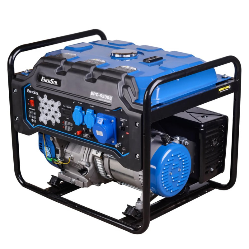 Генератор EnerSol EPG-5500S розроблений для енергонезалежності житлових та комерційних об'єктів у разі проблем у постачальника електрики. Компактність і автономність допускають використання машини при організації торгової точки або заходів просто неба, при здійсненні аварійно-рятувальних робіт. Особливості EnerSol EPG-5500S Фірмовий бензомотор виготовлений з довговічних деталей, адаптований до складних експлуатаційних умов та багатогодинних циклів. Великий потужний ресурс при середній камері ДВС сприяє відмінним робочим характеристикам при помірному споживанні бензину. Серійний номер дозволить контролювати якість двигуна та сервісне обслуговування після продажу. Доволі великий бензобак не потрібно часто заправляти, що забезпечить тривалу працездатність станції в інтервалах між зупинками. Будова та діаметр горловини розрахований на швидку заправку де завгодно. Базове навантаження на силову техніку становить 5 кВт для коректного функціонування без збоїв та поломок. На миттєві навантаження в момент старту електроінструменту закладено 10% резерв. Функція AVR дає вольтаж, наближений до прийнятого стандарту для 1-фазного розведення мережі, що забезпечує безпечне підключення чутливої електротехніки. Контрольно-вимірювальний пристрій відображає значення основних показників, що характеризують генерацію. Цифри на індикаторі з достатньою яскравістю помітні при різному рівні освітленості. Набір для транспортування полегшує переміщення важкого обладнання ділянкою та доставку до авто або іншого автомобіля між локаціями. Комплектація моделі EnerSol EPG-5500S: генератор; комплект коліс та ручок; цифровий мультиметр 3В1; картонна коробка; інструкція з експлуатації; гарантійний талон