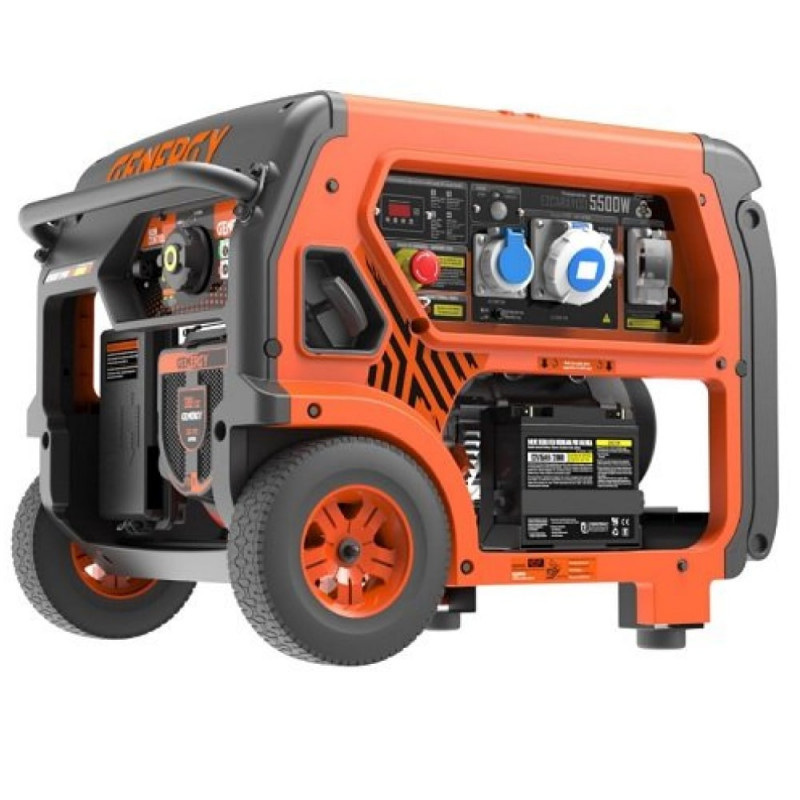 Генератор бензиновий GENERGY EZCARAY S 5,5 кВт – однофазний генератор 220В преміум класу з максимальним захистом від ураження струмом навіть за умови експлуатації в умовах підвищеної вологості. Підходить для постачання електроенергії будинків, офісів, будівельних майданчиків, кемпінгів і т.д. Здатний забезпечувати працездатність електроприладів із сумарною потужністю до 5 кВт (номінальна напруга). Максимальна напруга цієї моделі: 5,5 кВт. Особливості та переваги моделі EZCARAY S 5,5 кВт: Обладнаний 4-тактним OHV – двигуном GENERGY SGB390PRO EURO V з примусовим повітряним охолодженням, об'єм двигуна – 389 см3. Мотор виконує 3000 об/хв. Об'єм масла в картері – 1,1л. Альтернатор із мідною обмоткою. Функція SVR (стабілізація напруги) забезпечує стабільну подачу напруги без стрибків, завдяки чому до генератора можна підключати навіть чутливу техніку. Модель має легкий ручний пуск та електрозапуск (акумулятор входить до комплекту поставки). Підзаряджання акумулятора відбувається за допомогою вбудованого зарядного пристрою, який забезпечує оптимальний заряд батареї. Наявність захисту від перевантаження та низького рівня масла. На панелі керування знаходяться 2 розетки IP67: 1х16А та 1х32А 230В. Наявність пристрою залишкового струму 30mA для швидкого розмикання контактів, попередження витоку струму в ланцюзі, забезпечення захисту від ураження струмом. Зручне переміщення завдяки наявності двох 10-дюймових коліс та складаної ручки. Габарити (з колесами) – 859х664х667 мм. Країна-виробник: Іспанія. Комплектація: Генератор бензиновий; колеса (2 шт.); інструкція з експлуатації; гарантійний талон; картонна коробка