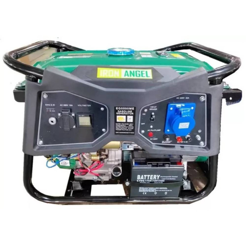 Iron Angel EG 5500 ME є високопродуктивним бензиновим генератором, призначеним для забезпечення енергією великих об'єктів, таких як котеджі, будинки або робочі майстерні. З максимальною потужністю 5.5 кВт та номінальною потужністю 5.2 кВт, цей генератор здатний підтримувати роботу безлічі пристроїв, включаючи великі електроінструменти та побутову техніку. Різноманітні функції запуску та продуманий дизайн роблять його незамінним помічником в умовах відсутності стаціонарного електропостачання. Особливості та переваги моделі Iron Angel EG 7500 ME (2001258): Вражаюча потужність. Модель EG 5500 ME здатна генерувати потужність до 5.5 кВт на однофазній напрузі 220 В, що робить її ідеальною для підключення обладнання з високим енергоспоживанням, такого як зварювальні апарати та котли. Універсальність запуску. Генератор оснащений як ручним стартером, так і електростартом, забезпечуючи гнучкість у використанні та спрощуючи запуск у будь-яких умовах, будь то холодна погода або термінова необхідність. Тривала робота. Завдяки потужному чотиритактному двигуну об'ємом 389 см³ та потужністю 13 к.с., генератор забезпечує тривалу та стабільну роботу, мінімізуючи необхідність частих обслуговувань. Розширені можливості підключення. З оснащенням розетками 1x16А та 1x32А, генератор пропонує зручність підключення різноманітних пристроїв, забезпечуючи оптимальне розподілення навантаження та збільшуючи функціональність. Автоматизація роботи. Можливість встановлення автоматики робить цю модель ідеальною для інтеграції в систему аварійного електропостачання, автоматично вмикаючись при зникненні електрики. Високий рівень безпеки. Конструкція передбачає захист від перевантажень, а також включає силову розетку 32 А для підключення важкого обладнання, що гарантує безпеку під час експлуатації. Портативність та стійкість. Незважаючи на вагу в 93 кг, генератор залишається портативним завдяки зручним точкам для підйому та перенесення, що робить його мобільним рішенням для тимчасового електропостачання. Довговічність матеріалів. Мідна обмотка альтернатора забезпечує високу провідність та надійність, збільшуючи термін служби пристрою та знижуючи ризики поломок. Комплектація: Генератор інструкція з експлуатації гарантійний талон картонна коробка
