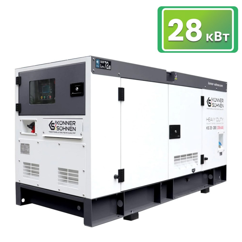 Konner&Sohnen KS 35-3BE - трифазний дизельний генератор з електронною системою контролю обертів двигуна та функцією попереднього підігріву охолоджувальної рідини. Обладнаний 4-циліндровим низькооборотним двигуном Baudouin з рідинним охолодженням, що відповідає міжнародним стандартам. Розширена система захисту включає запобіжники від перевантаження, короткого замикання та стрибків напруги. Додатково передбачено механічний захист у вигляді міцного корпусу і екранованих частин, що рухаються. Особливості моделі Könner&Söhnen 35-3BE: Мотор зі зниженою частотою обертання Працює на низьких обертах, знижуючи навантаження на внутрішні вузли, що збільшує термін служби. Оптимізований режим роботи зменшує витрати палива за збереження продуктивності. Надійна конструкція двигуна забезпечує стабільну роботу навіть при тривалих навантаженнях; Попередній підігрів двигуна Функція автоматичного розігріву рідини, що охолоджує, прискорює запуск при мінусових температурах. Це знижує знос двигуна при холодному старті та збільшує його ресурс; Інтелектуальний блок керування Цифрова панель контролює параметри роботи, включаючи частоту обертання, напругу та температуру. Вбудовані датчики оперативно реагують на відхилення та попереджають про необхідність технічного обслуговування; Підключення блоку АВР Система резервного введення активує генератор при відключенні основного джерела живлення. Після відновлення центрального електропостачання робота установки автоматично припиняється; Шумоізоляційний корпус Конструкція корпусу знижує рівень шуму, дозволяючи використовувати обладнання поблизу житлових та робочих зон. Додаткова ізоляція мінімізує вібрації та захищає від впливу опадів; Комфортний процес транспортування Вбудовані кріплення спрощують фіксацію агрегату під час транспортування. Зручні точки захоплення забезпечують безпечне навантаження та розвантаження. Оптимізований баланс ваги знижує навантаження під час маневрування та розміщення обладнання; Антикорозійне покриття Гальванізований шар запобігає корозії при експлуатації в умовах підвищеної вологості. Захисне покриття продовжує термін служби обладнання та знижує витрати на обслуговування; Комплектація моделі Könner&Söhnen 35-3BE: Електростанція; Упаковка; Гарантійний талон; Інструкція з експлуатації;