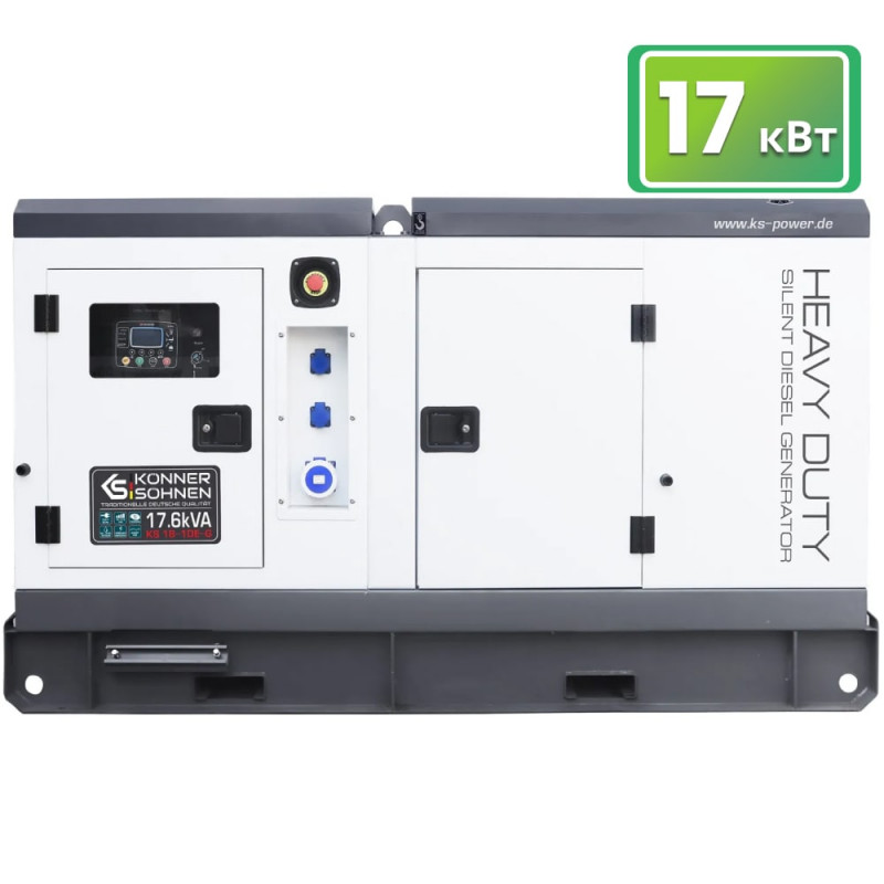 Переваги Konner&Shohnen KS 18-1DE-G: Професійний двигун Deutz з чотирма циліндрами. Обладнаний потужним чотирициліндровим чотиритактним двигуном (3170 см.куб.) з високоефективною системою охолодження рідиною, від одного з лідерів ринку, спеціаліста в даній галузі. Надійний, готовий працювати безперебійно в суворих умовах експлуатації. Низькооборотний, 1500 об/хв, економний, екологічно безпечний. Максимальна потужність однофазної установки - 17.6 кВт. Розрахований одночасно забезпечувати живленням велику кількість побутової техніки, електроніки, електроінструментів, включаючи енергоємні, з високими стартовими струмами. Оснащений захищеними розетками - дві по 16А та одна потужна силова на 32А. Час безперервної роботи - 25 годин. Велика потужна електростанція на одній заправці бака паливом та при підключеному навантаженні на половину номінальної потужності забезпечить безперервно електроенергією техніку протягом мінімум доби. 55-літровий паливний бак. При навантаженні 50% обладнання витрачає в середньому 2,23 л/год дизельного палива, повного паливного бака достатньо для забезпечення електроживленням техніки протягом 25 годин. > Функція стабілізації напруги. Високоефективна автоматична система стабілізує показники струму на виході, вирівнюючи частоту та напругу, дозволяючи без побоювань підключати чутливу електроніку, вимірювальну, медичну, комп'ютерну техніку. Електронний регулятор обертів двигуна. За допомогою електронного блоку управління здійснюється моніторинг та контроль усіх процесів, включаючи обороти двигуна, кількість палива, що подається з урахуванням поточного підключення сумарного навантаження. Комплектація KS 18-1DE-G: Генератор; інструкція з експлуатації; гарантійний талон.