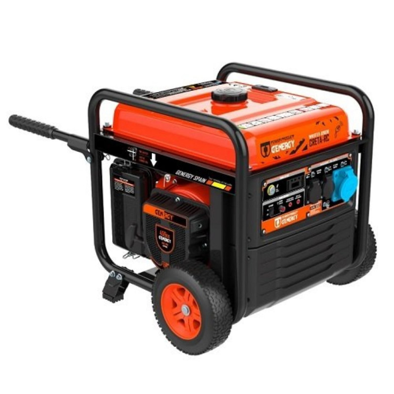 Генератор інверторний бензиновий GENERGY CRETA RC 7,5 кВт – однофазна 230В електростанція, призначена для забезпечення електроенергією приладів потужністю до 7,2 кВт (номінальна потужність). Максимальна потужність цього бензогенератора – 7,5 кВт. Виділяється серед аналогічних моделей наявністю пульта для дистанційного запуску, зменшеними масою та габаритами. Особливості та переваги моделі GENERGY CRETA RC (240016090): Модель оснащена фірмовим чотиритактним бензиновим двигуном OHV з примусовим повітряним охолодженням GENERGY SGB460PRO EURO V об'ємом 459 см3. Об'єм олії – 1,1 л. Альтернатор інверторний, завдяки чому до GENERGY CRETA RC можна підключати чутливу до перепадів напруги цифрову техніку. Наявність захисту від низького рівня масла, перевантаження та короткого замикання. Легкий ручний запуск та електрозапуск PUSH ST – запускає генератор натисканням однієї кнопки (акумулятор входить у комплект поставки). Також запуск можна виконати з пульта дистанційного керування, радіус дії якого до 50 м (в комплекті 1 пульт). Довгий термін служби акумулятора завдяки системі автоматичного вимкнення при тривалій бездіяльності. Це дозволяє захистити батарею від повної розрядки. Наявність режиму ECO drive – автоматично регулює оберти двигуна в залежності від навантаження, таким чином дозволяючи заощаджувати пальне. На панелі керування знаходяться розетки 2х16А 230 В (IP44), 1х32А 230 В (IP44) та розетка постійного струму 1х12 В для заряджання акумуляторів. Клас виконання: G2. Комплектація GENERGY CRETA RC (240016090): Генератор; транспортний набір; інструкція з експлуатації; гарантійний талон; пульт; картонна коробка