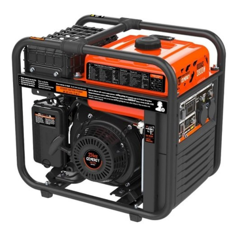 Генератор інверторний бензиновий GENERGY RODAS 3,5 кВт – однофазна 230В електростанція, призначена для забезпечення електроенергією приладів потужністю до 3,5 кВт (номінальна потужність). Максимальна потужність цього бензогенератора – 3,8 кВт. Особливості та переваги моделі GENERGY RODAS, 3.8кВт: Модель оснащена фірмовим чотиритактним бензиновим двигуном OHV з примусовим повітряним охолодженням GENERGY SGB225PRO EURO V об'ємом 224 см3. Об'єм олії – 0,6 л. Альтернатор інверторний, завдяки чому до GENERGY RODAS можна підключати чутливу до перепадів напруги цифрову техніку. Наявність захисту від низького рівня масла, перевантаження та короткого замикання. Легкий ручний запуск та електрозапуск PUSH ST – запускає генератор натисканням однієї кнопки (акумулятор входить у комплект поставки). Паливний бак об'ємом 10 л. Наявність режиму ECO drive – автоматично регулює оберти двигуна в залежності від навантаження, таким чином дозволяючи заощаджувати пальне. На панелі керування знаходяться розетки 2х16А 230 В (IP44) та розетка постійного струму 1х12 В для заряджання акумуляторів. Клас виконання: G2. Клас ізоляції: F /A. Комплектація GENERGY RODAS, 3.8кВт: Генератор інверторний бензиновий; інструкція з експлуатації; гарантійний талон; картонна коробка