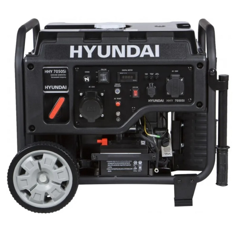 Інверторний генератор Hyundai HHY 7050Si - це вигідна інвестиція в енергетичну незалежність заміського будинку, дачі, офісу, торгової точки. Правильна синусоїдальна форма та стабільна напруга допускають живлення електроспоживачів із суворими вимогами до якості електроенергії. Чому варто купити Hyundai HHY 7050 Si Фірмовий двигун IC 312. Високонадійна серія бензомоторів Industrial Commercial орієнтована на тривале функціонування, моторесурс складає від 1500 мотогодин напрацювання. Агрегат видає більше 9 л. при середній кубатурі OHV знизило норми витрати нафтопродуктів для вироблення електрики, скоротило шкідливі викиди в атмосферу. Комбінований тип запуску. Шнуровий та електростартер дають можливість вибору найбільш відповідного методу включення апарата з урахуванням фізичних особливостей користувача. 15-літровий паливний бак. Місткий резервуар у верхній частині установки зручний для заповнення, формує хороший запас енергоносія, щоб уникнути частих зупинок. Максимальна потужність 5,5 кВт. Модель розрахована на 5000 Вт підключеного навантаження при штатному функціонуванні, що дозволить працювати з досить енергоємним інструментом та виробничим обладнанням. Закладений потужності резерв передбачає легке подолання пускових струмів в момент пуску електродвигуна. Термін роботи на одній заправці до 5 годин. Багатогодинна генерація електрики в безперервному режимі реалізована низькою витратою бензину - всього 300 г на 1 кВт/год, а також захисних систем, що запобігають аваріям та перебоям у роботі техніки. Силова розетка 220 Вольт, 32А. Роз'єм для забору повної потужності бензогенератора через одне електричне джерело живлення допускає підключення енерговитратних перфораторів, болгарок, шуруповертів, вузькопрофільних машин. Комплектація Hyundai HHY 7050 Si генератор бензиновий; свічковий ключ гарантійний талон; інструкція з експлуатації; картонна коробка