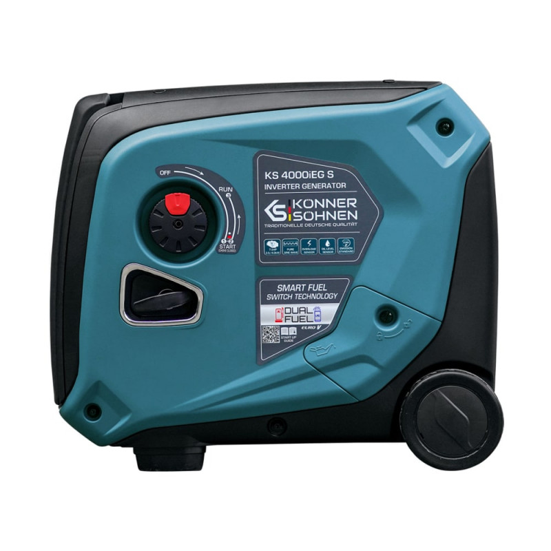 Газобензиновий генератор інверторного типу KS 4000iEG S німецької торгової марки Könner & Söhnen в шумозахисному корпусі – це зручне джерело електроенергії з низьким рівнем шуму. Ключова особливість даної моделі полягає в тому, що вона виробляє електричний струм з правильною синусоїдою. Особливості та переваги моделі: ПРАВИЛЬНА СИНУСОЇДА Вбудований електронний блок з мікропроцесорним керуванням контролює роботу генератора та забезпечує стабільну вихідну напругу 230В 50Гц синусоїдальної форми, що підходить для надійної роботи чутливої електроніки. УНІВЕРСАЛЬНІСТЬ ВИКОРИСТАННЯ Можливість використовувати як з переносним газовим балоном, так і зі стаціонарною ємністю для зберігання газу (газгольдером). За умови підключення сертифікованим фахівцем. Тиск в системі подачі не повинен перевищувати 16 Бар. НИЗЬКИЙ РІВЕНЬ ШУМУ Шумозахисний корпус забезпечує мінімальний рівень шуму (66 дБ Lpa 7м), комфортне використання і зручне транспортування. ЕРГОНОМІЧНА ПАНЕЛЬ УПРАВЛІННЯ Ергономічна панель управління оснащена: LED-дисплеєм, двома USB-роз'ємами 5В/1A, 5В/2.1A, типовою автомобільною розеткою 12В, перемикачем економічного режиму, індикаторами робочого стану, роз'ємом для паралельного підключення генераторів для отримання подвійної потужності, а також кнопкою RESET для перезавантаження системи контролю (при спрацьовуванні автомата захисту) та відновлення подачі напруги. ВИСОКОЯКІСНИЙ АЛЬТЕРНАТОР У генераторах інверторного типу Könner & Söhnen встановлено високоякісний безщітковий альтернатор зі 100% мідною обмоткою. Надійний та компактний альтернатор встановлений на постійних магнітах, у пластиковому кожусі та може витримувати максимальні навантаження без ушкоджень, гарантує тривалу надійну роботу генераторної установки. ПАРАЛЕЛЬНЕ ПІДКЛЮЧЕННЯ Можливість паралельного підключення двох генераторів через спеціальний прилад для отримання подвійної потужності. ТРАНСПОРТУВАЛЬНИЙ КОМПЛЕКТ Інверторні генератори Könner & Söhnen оснащені транспортувальною системою для зручного переміщення. Два колеса та ручка, що підіймається під час переміщення генератора, забезпечують комфортне транспортування та мобільність агрегата. Комплектація Konner&Sohnen KS 4000iEG S: генератор; шланг із редуктором; Викрутка; Свічковий ключ; Чохол для аксесуарів; картонна коробка; Інструкція з експлуатації; гарантійний талон