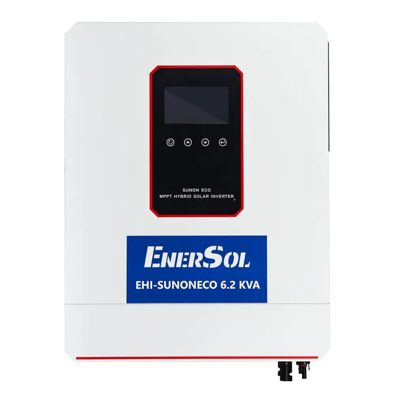 Інвертор гібридний EnerSol EHI-SUNONECO6.2KW (6.2 кВт, 51.2 В) - призначений для ефективного керування енергією в системах із відновлюваними джерелами, такими як сонячні панелі. Він об'єднує функції інвертора та зарядного пристрою, забезпечуючи безперебійне електропостачання та оптимальне використання енергії. Особливості моделі EnerSol EHI-SUNONECO6.2KW: Висока ефективність: Коефіцієнт корисної дії (ККД) досягає 93%, що забезпечує мінімальні втрати енергії. Гнучкість у використанні: Сумісний з різними типами акумуляторів, включаючи літій-іонні та свинцево-кислотні батареї. Інтелектуальне керування: Підтримка систем керування батареями (BMS) через інтерфейси RS485 та CAN для оптимального контролю заряджання та розряджання. Надійність: Ступінь захисту IP65 дозволяє використовувати інвертор у різних умовах довкілля, забезпечуючи захист від пилу та води. Низький рівень шуму: Рівень шуму менше 25 дБ робить його придатним для встановлення в житлових приміщеннях. Комплектація моделі EnerSol EHI-SUNONECO6.2KW: Інвертор гібридний EnerSol EHI-SUNONECO6.2KW Інструкція з експлуатації; Гарантійний талон; Упаковка;