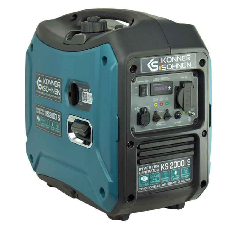Портативний генератор KS 2000i S німецької ТМ «Könner & Söhnen» — це зручне джерело електроенергії в шумозахисному корпусі. Вбудований електронний блок з мікропроцесорним управлінням контролює роботу генератора і забезпечує фіксовану частоту 50 Гц і напругу 230В. Економічний режим дозволяє знизити витрату палива до 50% при малих навантаженнях завдяки зниженню оборотів двигуна. Альтернатор з мідною обмоткою і потужний двигун K&S гарантують безаварійне і тривале використання та відповідають всім європейським стандартам якості. Наявність LED-дисплея дає можливість якісніше контролювати роботу генератора і своєчасно проводити його технічне обслуговування. Особливості та переваги моделі: ПРАВИЛЬНА СИНУСОЇДА Вбудований електронний блок з мікропроцесорним керуванням контролює роботу генератора та забезпечує стабільну вихідну напругу 230В 50Гц синусоїдальної форми, що підходить для надійної роботи чутливої електроніки. НАДІЙНИЙ ДВИГУН Фірмовий надійний двигун K&S відрізняється підвищеною зносостійкістю, тривалою і стабільною роботою, та відповідає всім європейським стандартам якості, в тому числі EURO V. ЕКОНОМІЧНИЙ РЕЖИМ Режим економії палива ECONOMY MODE зменшує витрати палива до 50% при малих навантаженнях завдяки зниженню оборотів двигуна. ЕРГОНОМІЧНА ПАНЕЛЬ КЕРУВАННЯ Зручне розташування усіх функцій: багатофункційний LED-дисплей (лічильник мотогодин, вольтаж, частота), індикатори контролю стану генераторної установки, що сигналізують про робочий стан, спрацювання автомату захисту при перевантаженні або короткому замиканні, про низький рівень оливи, кнопка Reset для перезавантаження системи контролю та відновлення подачі напруги, роз’єм для паралельного підключення генераторів, два USB-виходи (5B/1A, 5B/2.1A), розетка 230В та клема заземлення. НИЗЬКИЙ РІВЕНЬ ШУМУ Шумозахисний корпус забезпечує мінімальний рівень шуму (62 дБ Lpa 7м), комфортне використання і зручне транспортування. ВИСОКОЯКІСНИЙ АЛЬТЕРНАТОР У генераторах інверторного типу Könner & Söhnen встановлено високоякісний безщітковий альтернатор зі 100% мідною обмоткою. Надійний та компактний альтернатор встановлений на постійних магнітах, у пластиковому кожусі та може витримувати максимальні навантаження без ушкоджень, гарантує тривалу надійну роботу генераторної установки. ПАРАЛЕЛЬНЕ ПІДКЛЮЧЕННЯ Можливість паралельного підключення двох генераторів через спеціальний прилад для отримання подвійної потужності. Комплектація: генератор сервісний набір інструкція упаковка