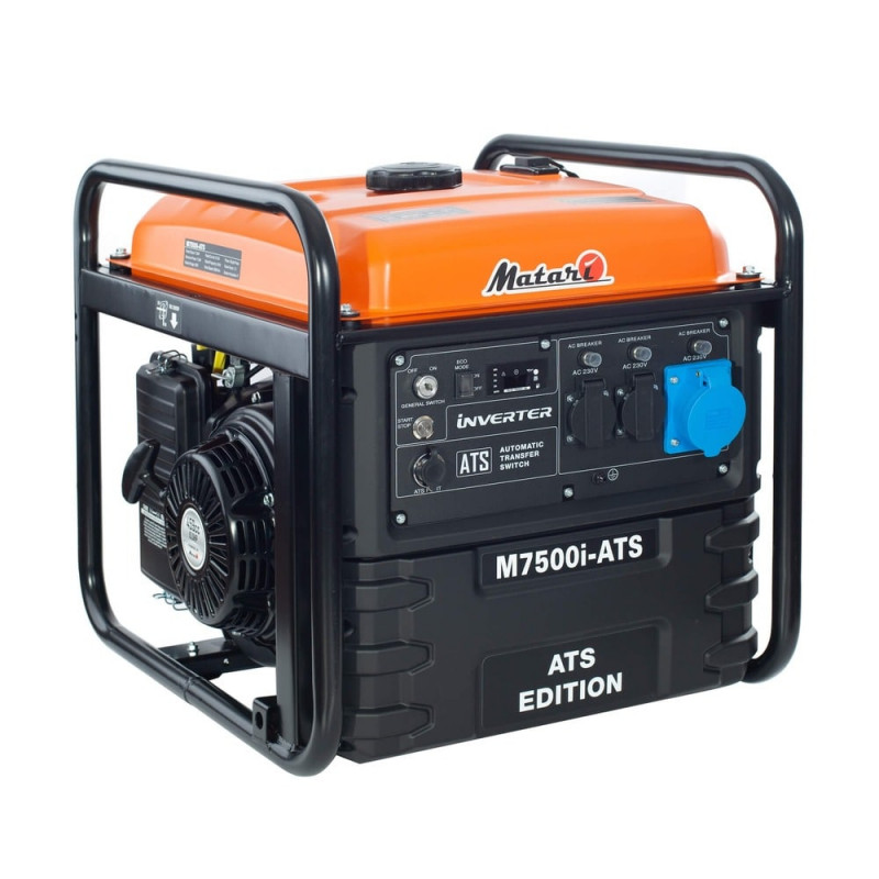 Інверторний генератор Matari M7500I-ATS без кожуха поєднує в собі потужність та передові технології, пропонуючи резервну потужність 7.5 кВт та номінальну потужність 7.2 кВт. Має систему автоматичного регулювання напруги (АВР) та ефективне повітряне охолодження. Є потужним і надійним рішенням для забезпечення енергією в різних умовах, від побутового використання до професійних потреб, забезпечуючи стабільність і безпеку харчування. Особливості та переваги моделі Matari M7500I-ATS: Інверторна технологія. Гарантує чисту та стабільну вихідну напругу, що робить генератор відмінним вибором для живлення чутливої електроніки та високоточних пристроїв без ризику пошкоджень. Потужна продуктивність. З резервною потужністю 7.5 кВт та номінальною потужністю 7.2 кВт, Matari M7500I-ATS здатний підтримувати роботу великої побутової техніки, електроінструментів та систем освітлення протягом тривалого часу. Однофазна напруга 220 В. Забезпечує широку сумісність з більшістю побутових та професійних електроприладів, спрощуючи інтеграцію в існуючі системи живлення. Автоматика АВР. Система автоматичного регулювання напруги підвищує надійність роботи генератора, запобігаючи стрибкам напруги та захищаючи підключені пристрої. Ефективне охолодження. Повітряне охолодження сприяє підтримці оптимальної робочої температури, мінімізуючи ризик перегріву та продовжуючи термін служби пристрою. Великий обсяг паливного бака. Об'єм 24 літри забезпечує збільшений час автономної роботи без необхідності частої дозаправки, що особливо зручно в умовах тривалого використання або у віддалених місцях. Низька витрата палива. Витрата палива всього 2 л/годину при 60% навантаженні робить генератор економічним в експлуатації, знижуючи загальні витрати на паливо. Зручність обслуговування та надійний запуск. Електростарт та збільшена ємність масла (1.1 л) забезпечують легкий запуск та спрощують обслуговування, скорочуючи час на технічне обслуговування та підвищуючи загальну надійність генератора Комплектація: Генератор упаковка інструкція з експлуатації гарантійний талон